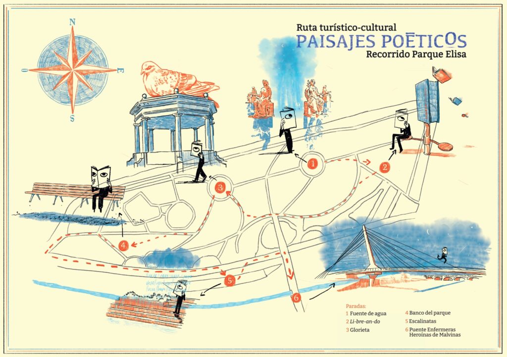 Este circuito invita a recorrer el parque Las Heras-Elisa a través de los sentidos, leyendo y escuchando poemas de autores y autoras de la ciudad de Córdoba.